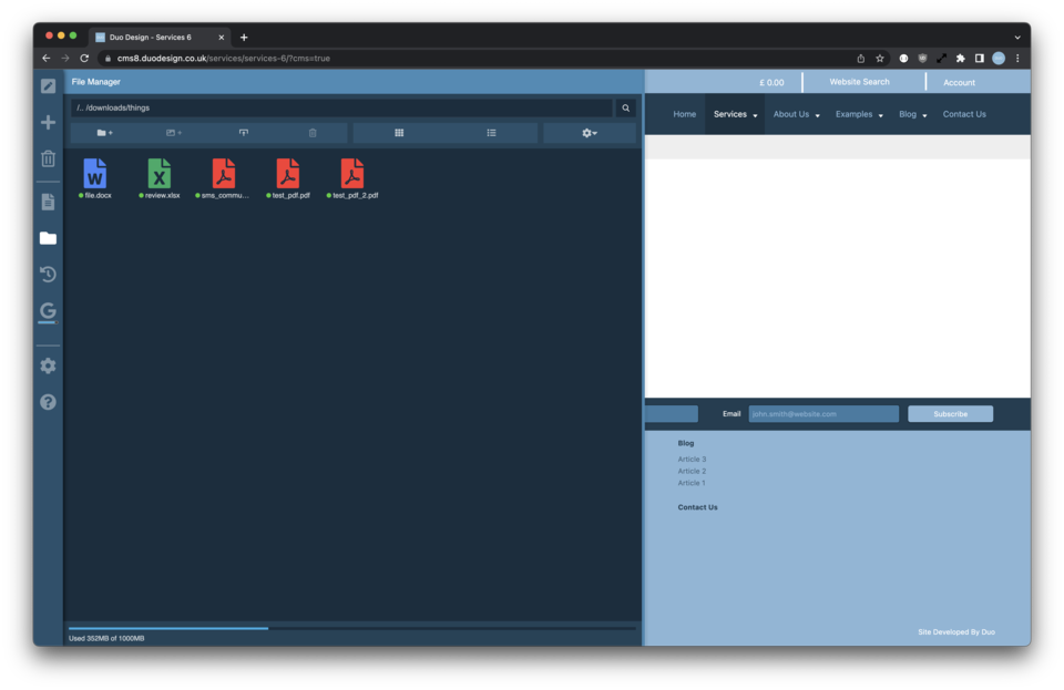All of our content managed websites have built in document management.