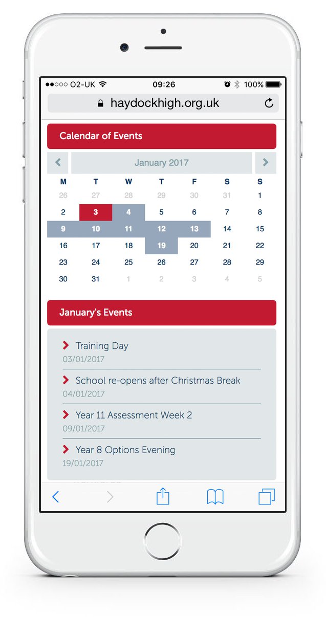 To help alleviate the efforts required, our school websites feature an inbuilt calendar system. This allows members of staff to add all their future events which can easily be flicked through by all users of the website.