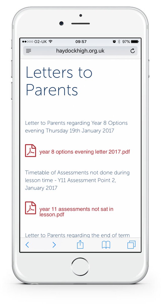 To help the schools manage this issue, having an easy to maintain system on the website to upload and distribute your letters can be a big help. Our school websites all come with an easy to use document management systems. So this allows the school to upload various information in an easy to download and print format. The system supports all the usual file formats including Word, Excel, Powerpoint and PDF's.