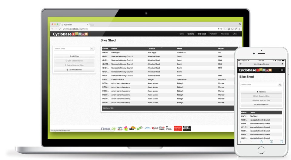 Responsive web applications allow access to your data on any web enabled device. For "cyclobase" this means they can access and update their bike maintenance records, view their parts bin and generate services from anywhere, including their phones.