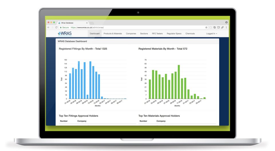 The system pictured here is the Water Regulations Advisory Scheme (WRAS). Their system has a wide range of functionality. It's chief purpose is to manage the registration and testing of all materials and components used within the UK public water system. This included the creation and sending of letters and certificates for over 20,000 products. This system sits as the back end to their website, allowing the public and plumbing professionals to test the validity of parts before their use in connection with mains running water.